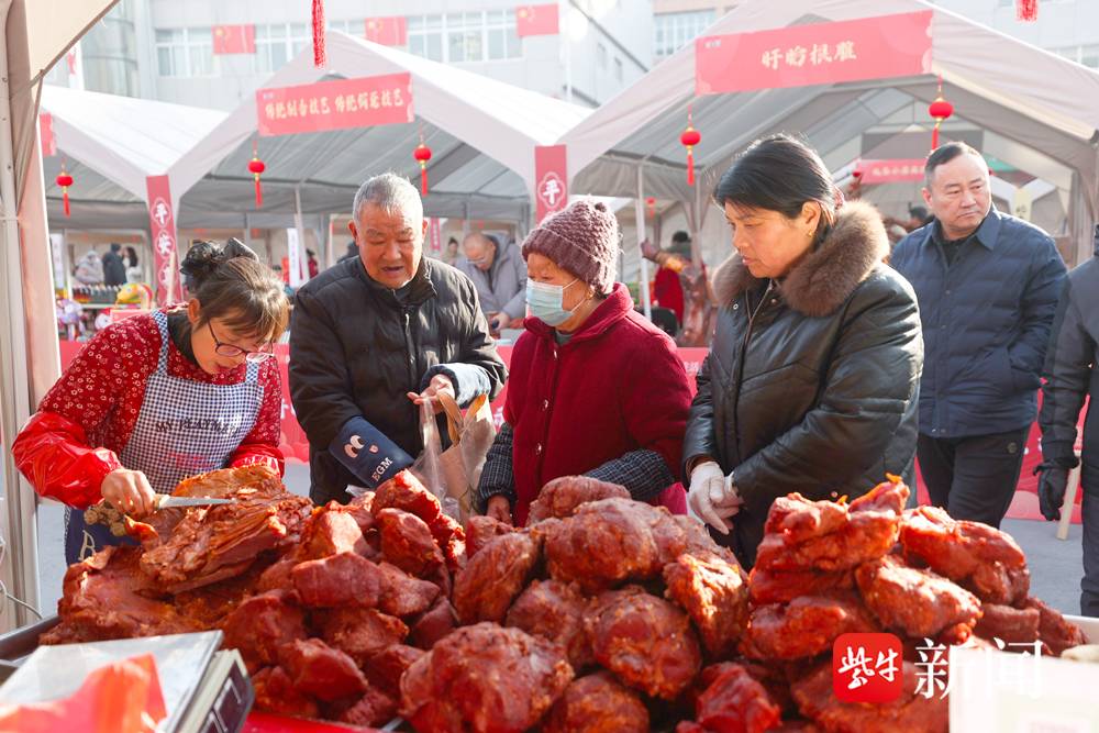 走进盱眙县尅街广场的年货大集,映入眼帘的是熙熙攘攘的人群和此起彼伏的吆喝声,浓浓的年味儿瞬间扑面而来。近百个展位上,千余款特色产品齐齐亮相,让人目不暇接。这里不仅有日常所需水果蔬菜、米面粮油、肉类生鲜,还有盱眙特产的龙虾香米、仇集黄牛肉、黄花塘包子、水库鱼等特色农副产品。现场叫卖声、还价声不绝于耳。